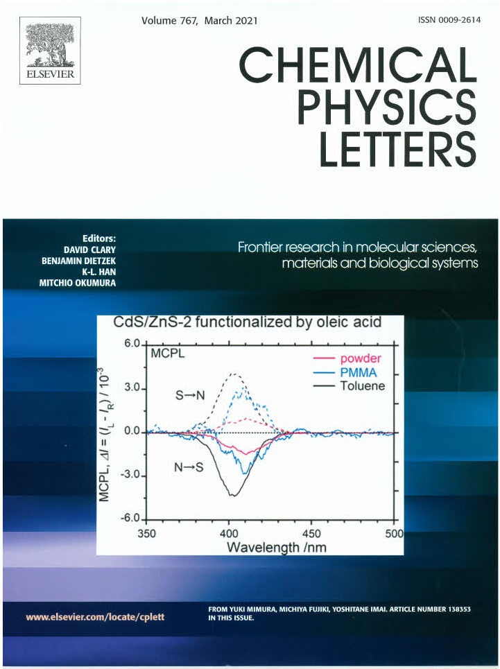 今井 喜胤(評価グループ、近畿大学)による「CdZnS量子ドット発光体からの外部磁場印加による磁気円偏光発光(MCPL)」に関する研究の成果が、ElsevierのChem. Phys. Lett.誌に掲載(DOI: 10.1016/j.cplett.2021.138353)され、Editor's choice、Front Cover Pictureに選ばれました。