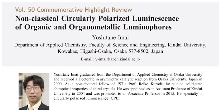 "Non-classical Circularly Polarized Luminescence of Organic and Organometallic Luminophores" Chem. Lett. 2021, 50, 1131–1141.