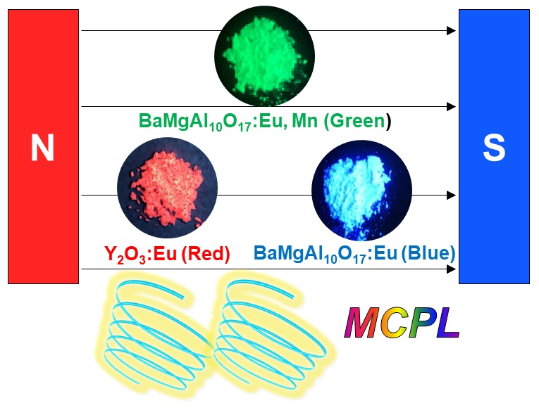 "Ambidextrous Solid-state Magnetic Circularly Polarized Luminescence (MCPL) from Red-Green-Blue Inorganic Luminophores without Molecular Chirality", Chem. Lett., 2021, 50, 916-919.