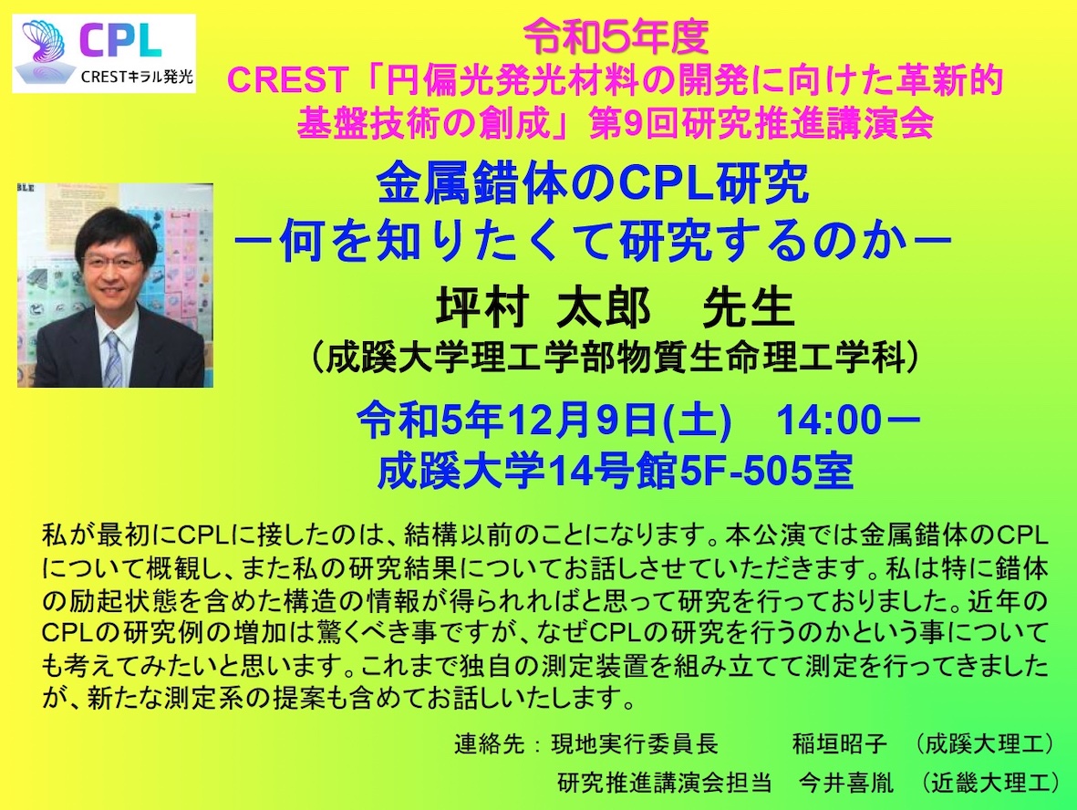 - 2023/7/18 第9回CREST研究推進講演会を成蹊大学にて行います。