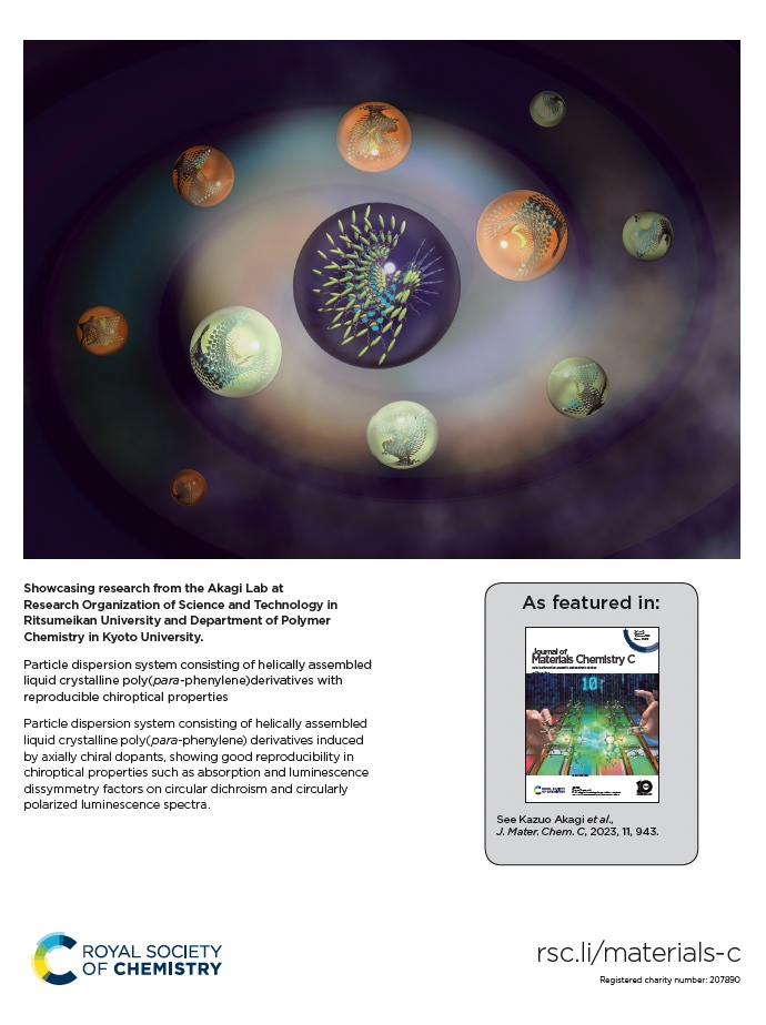 “Particle dispersion system consisting of helically assembled liquid crystalline poly(para-phenylene) derivatives with reproducible chiroptical properties” J. Mater. Chem. C, 2023, 11, 943-952.