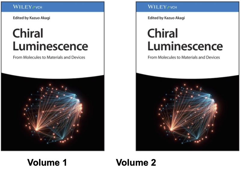 - 2024/4 キラル発光や円偏光発光に関する書籍「Chiral Luminescence: From Molecules to Materials and Devices, 2 Volumes, Ed. K. Akagi, Wiley-VCH, 2024, 38 Chapters, 992 pages, ISBN: 978-3-527-35180-0」がWiley出版から上梓されました。 赤木CRESTメンバーを含む国内外のキラル光学分野の研究者がチャプター執筆者となっています。